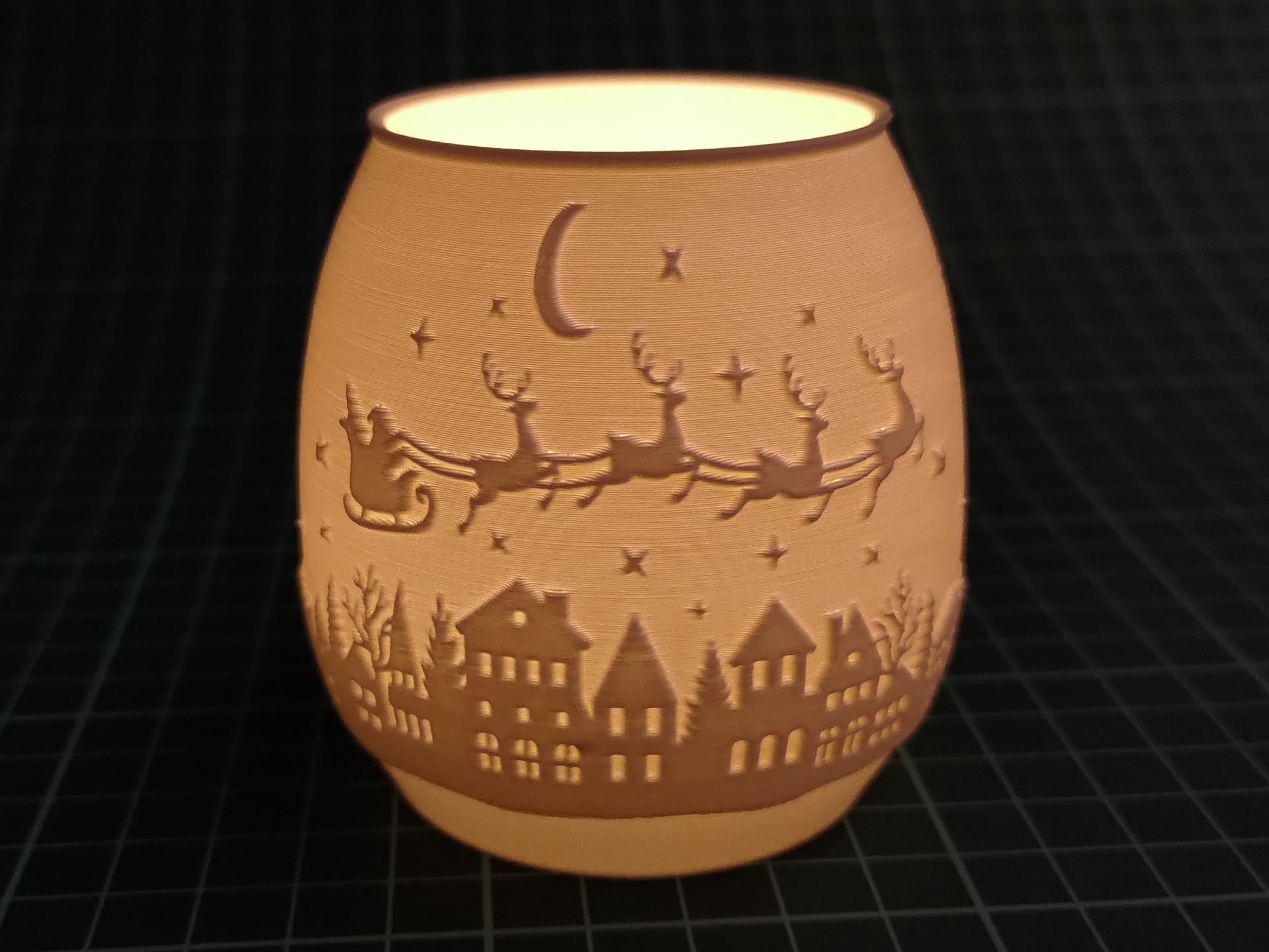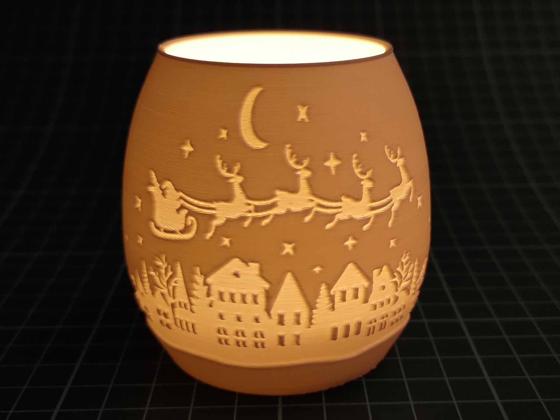 Lampara Litofania Navideña: Escena de Santa Claus Y el Pueblo